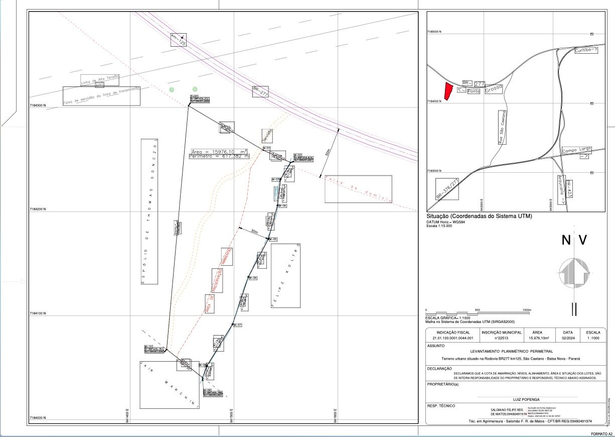 Este espaçoso terreno com 15976.1m² está localizado em uma região privilegiada do bairro São Caetano em Balsa Nova-PR, próximo a rodovia e shopping, tornando-se uma opção ideal para quem busca adquirir um lote com grande potencial de valorização.